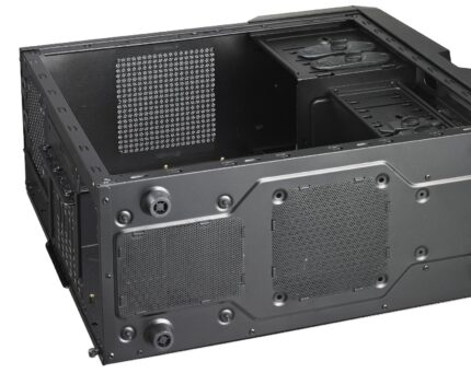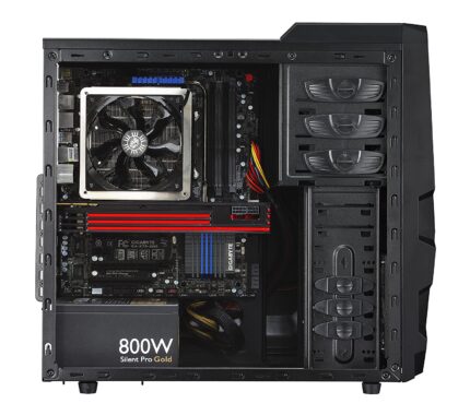 • Large windowed side panel with fan mounting to cool graphics cards