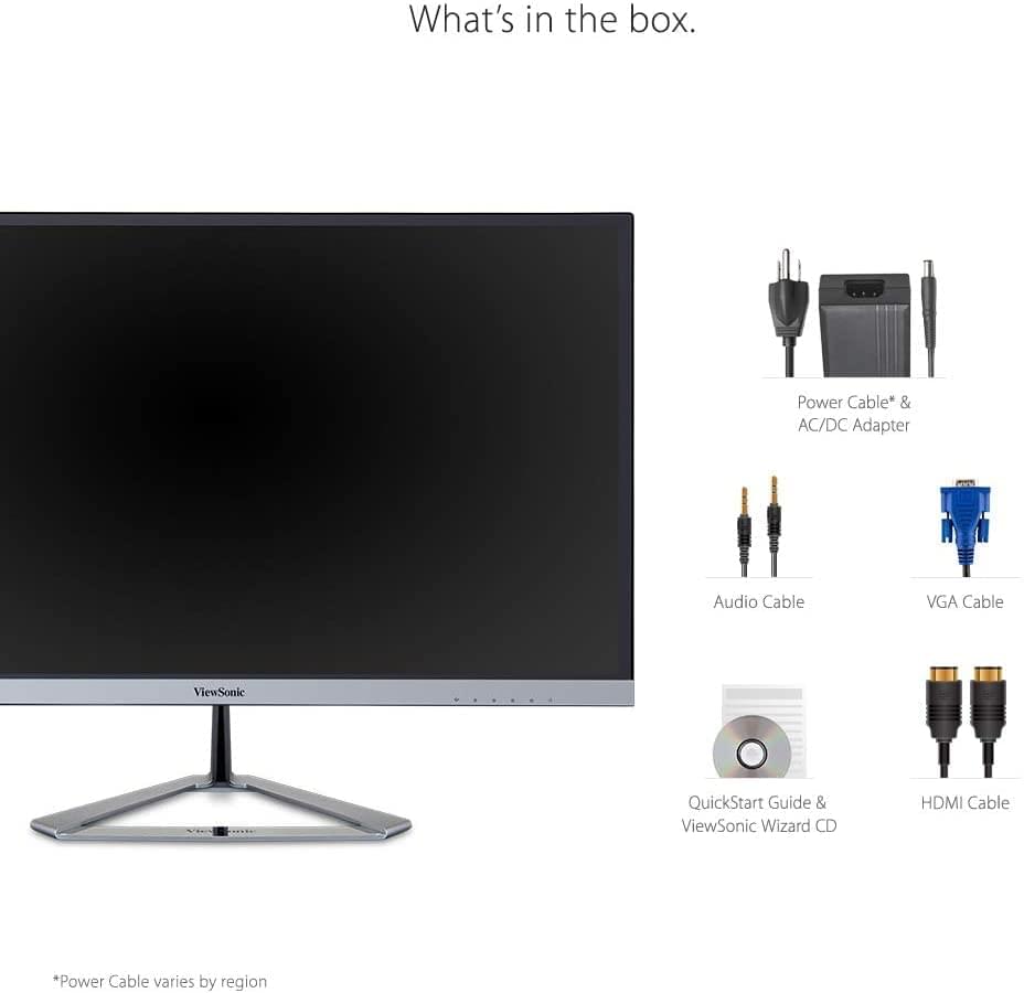 Whether for office use or for enjoying entertainment at home, the ViewSonic® VX2776-SH is designed to take your viewing experience to another level. With a SuperClear® IPS panel and a sleek frameless design, this monitor provides a near-seamless viewing experience ideal for multi-monitor setups. The Full HD resolution boosts efficiency and image detail needed for work or play. A mega dynamic contrast ratio of 80M:1 delivers enhanced image depth for a better user experience. The Built-in HDMI and VGA inputs deliver flexible connectivity options for a wide range of devices.